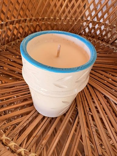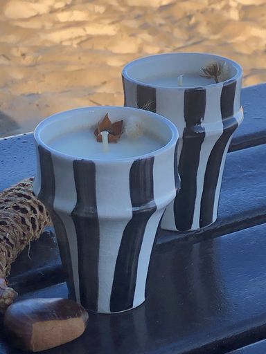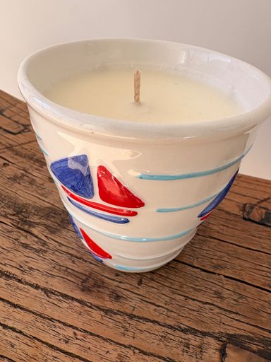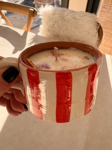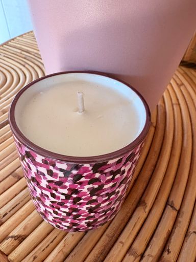 Dans un magnifique contenant en Raku, Jacqueline a choisi la fragrance Tomate Basilic et a personnalisé sa bougie avec une petite touche personnelle