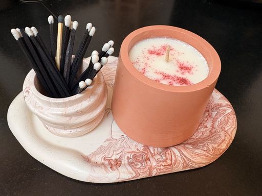 D'autres nouveautés dans des contenants uniques que j'ai réalisés en Jesmonite ( Pierre de schiste et résine végétal), accompagnées de petits pots d'allumettes ( le plaisir s'associe au design)