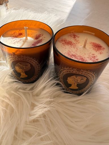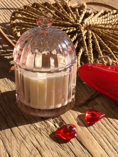 Mme L a choisi un contenant en verre soufflé, choix également d'une fragrance Caramel Beurre salé